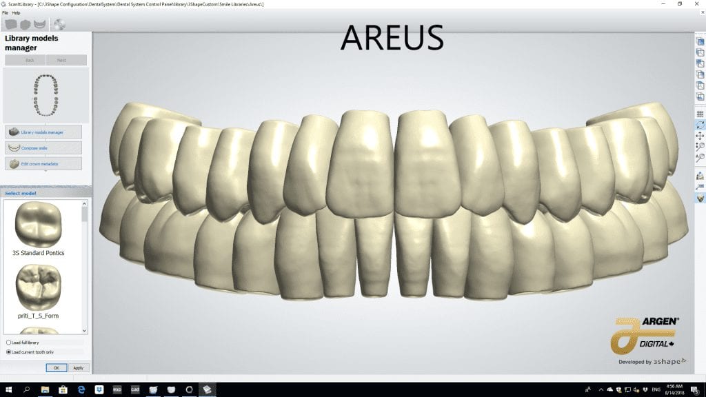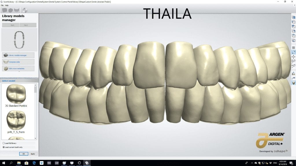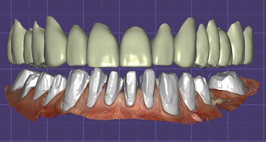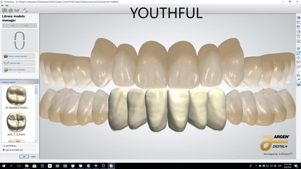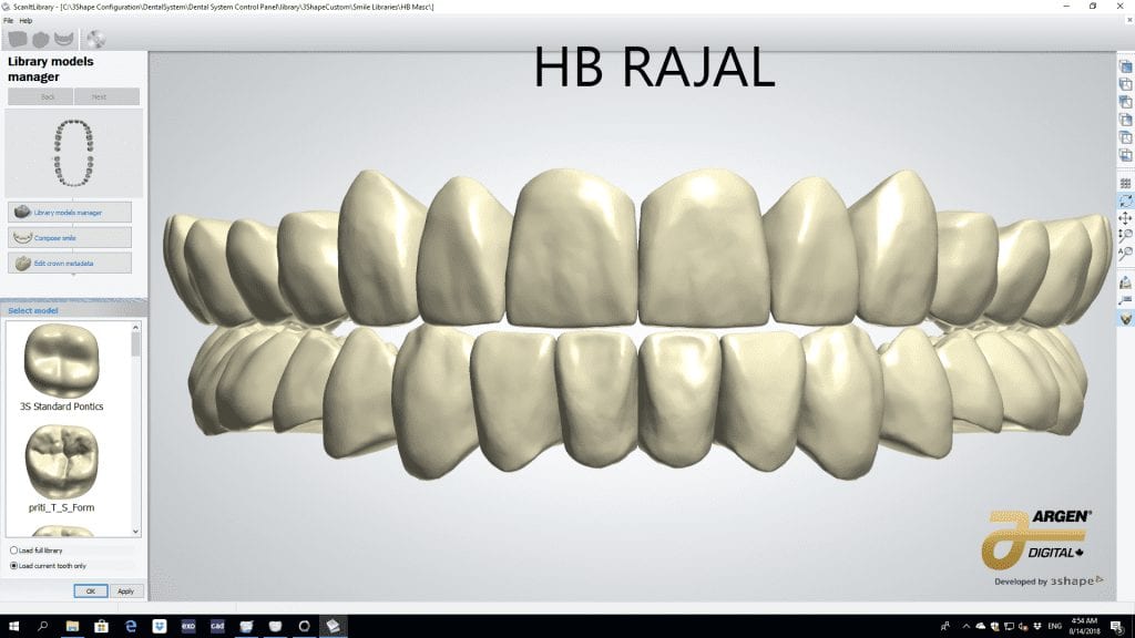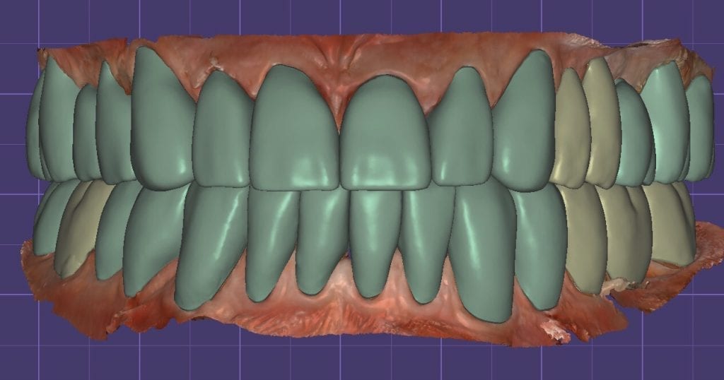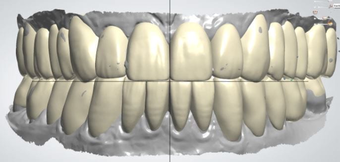 The digital models were then imported into a third party software where a library of tooth morphologies are available for the clinician to choose from.