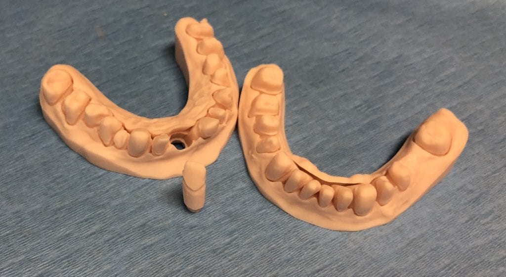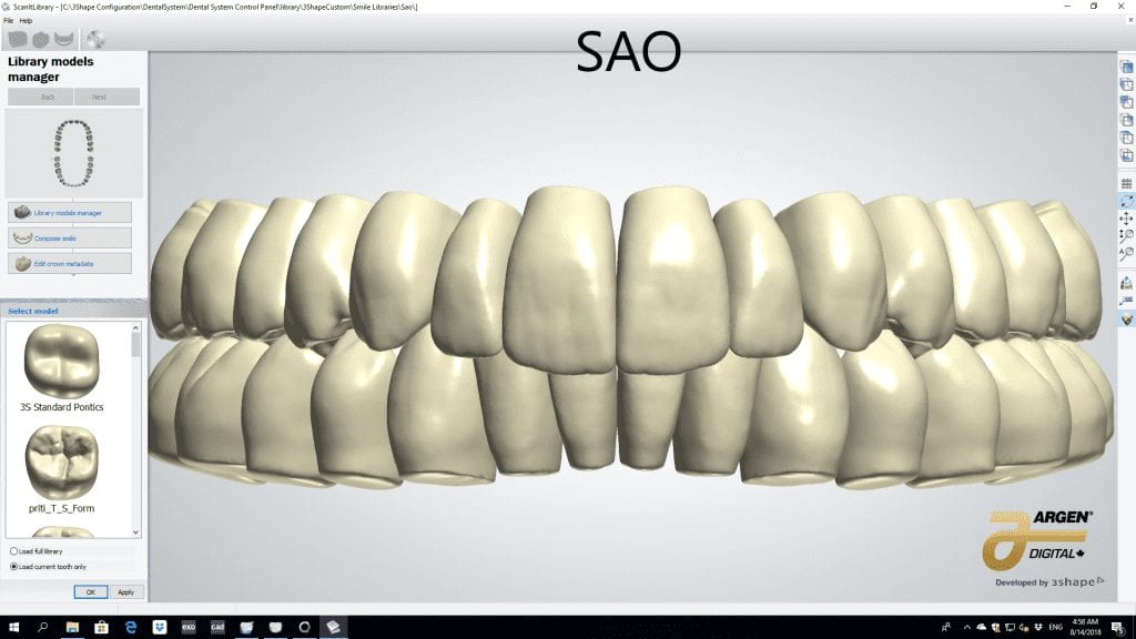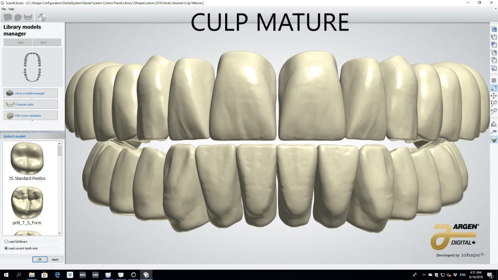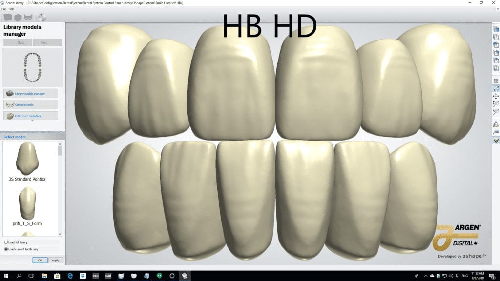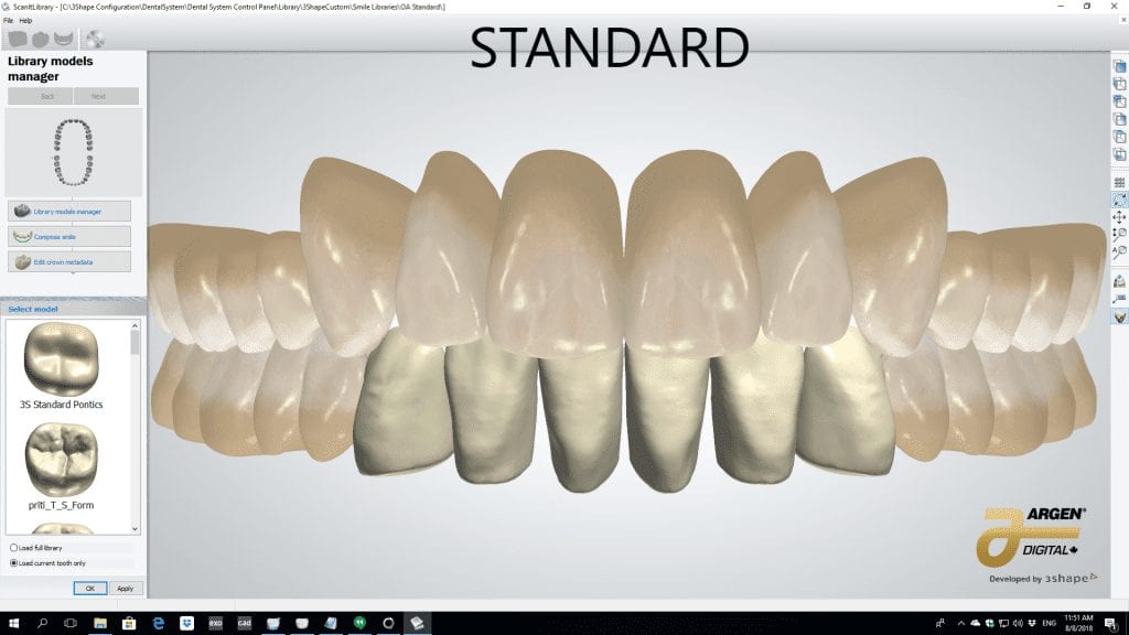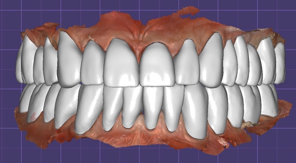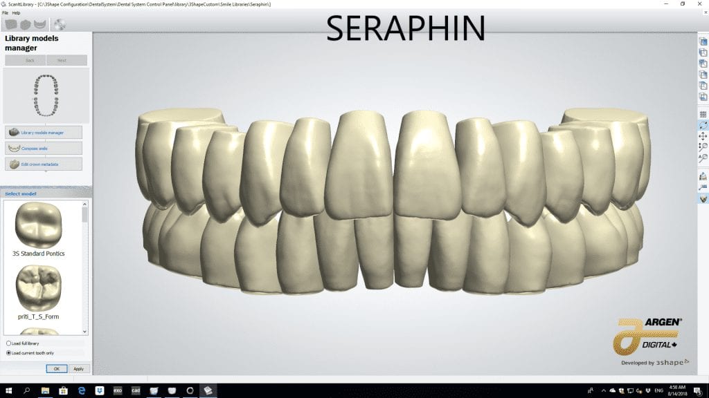 The digital models were then imported into a third party software where a library of tooth morphologies are available for the clinician to choose from.