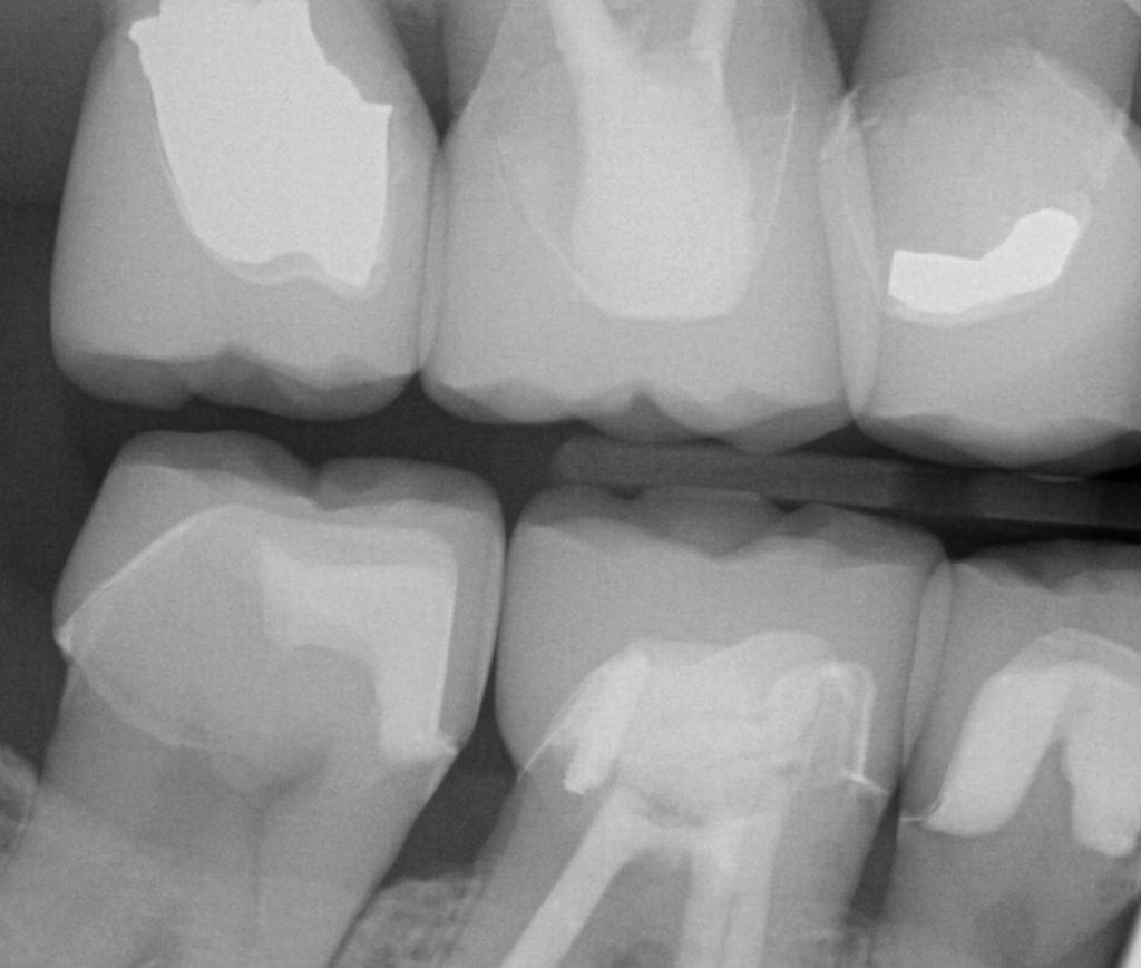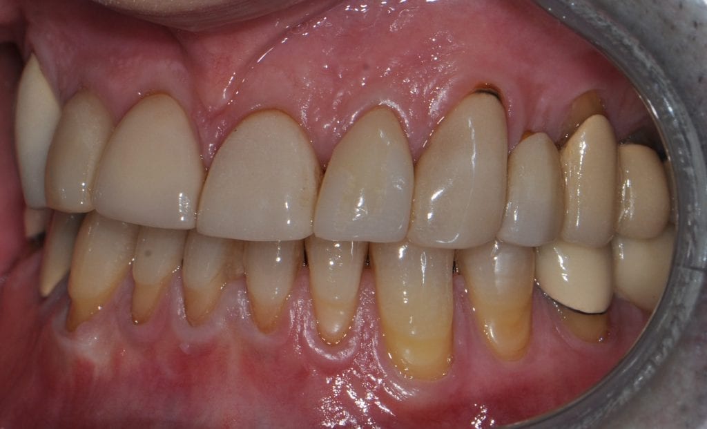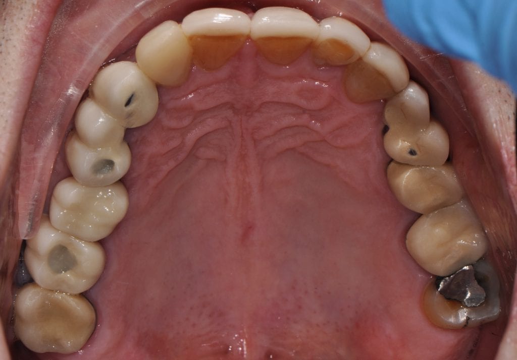 The initial vertical dimension was greater than desired and the tooth shape was too bulky in appearance.