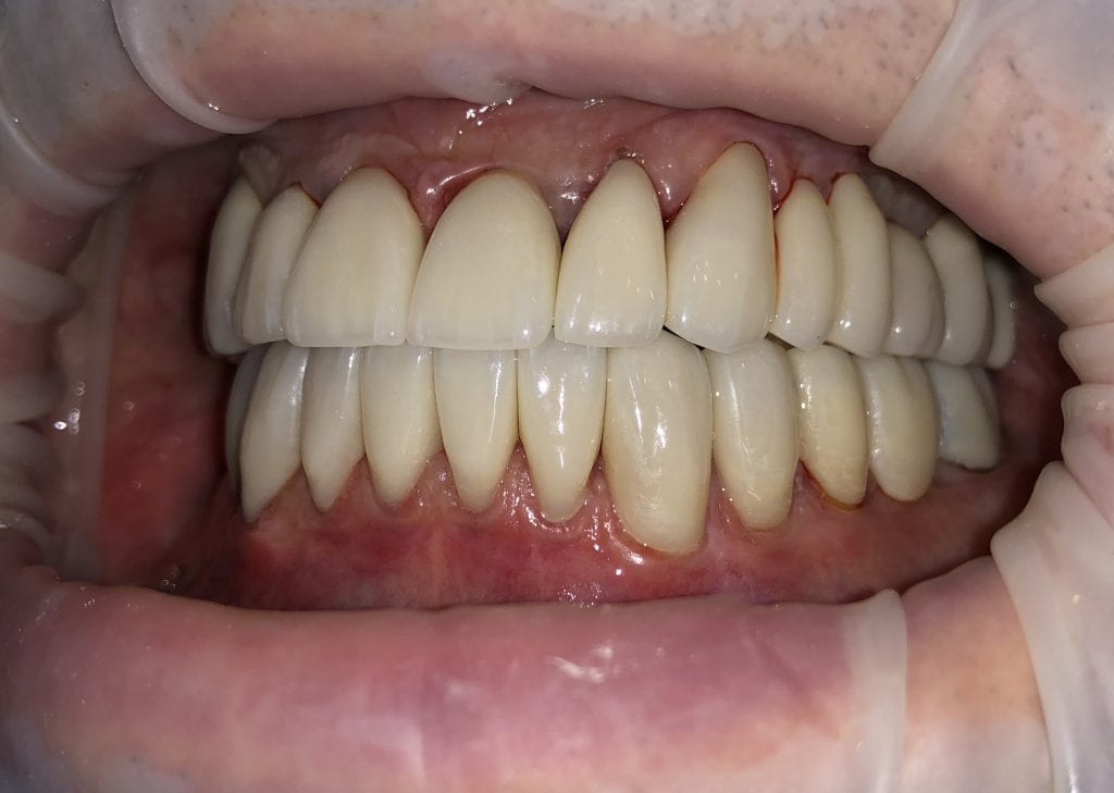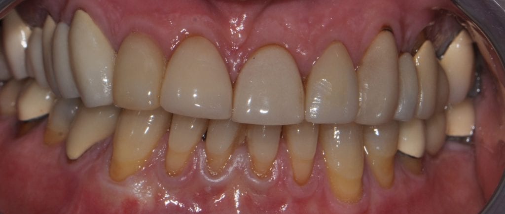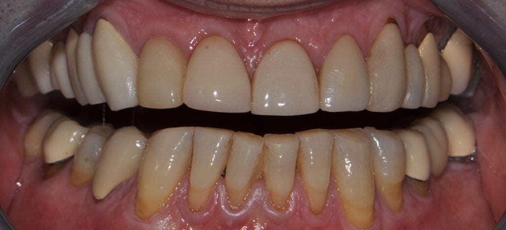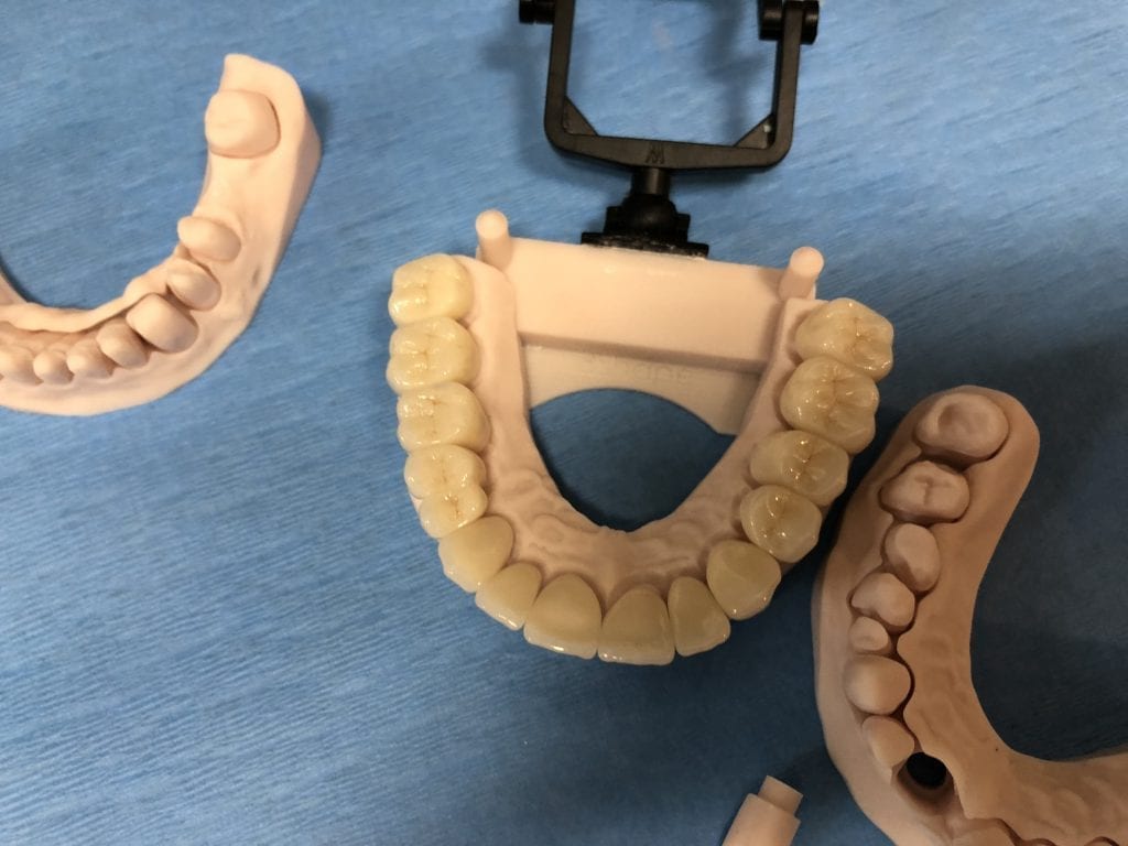 After the upper jaw was related to the temps, the same was done with the lower arch. Great care was taken to make sure the arches were properly related to each other throughout the process