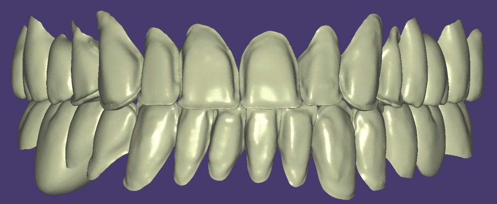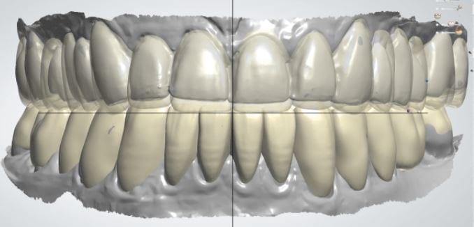 This was then imported into exocad where the prepped arches from a few weeks prior were force matched to the new bite