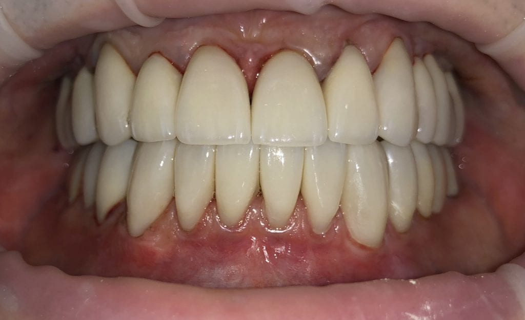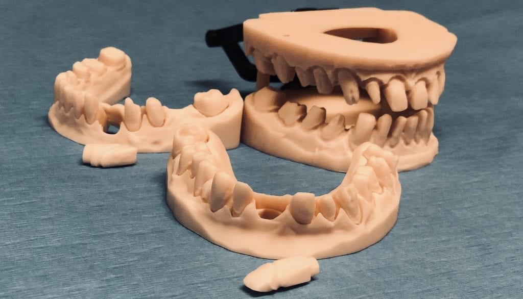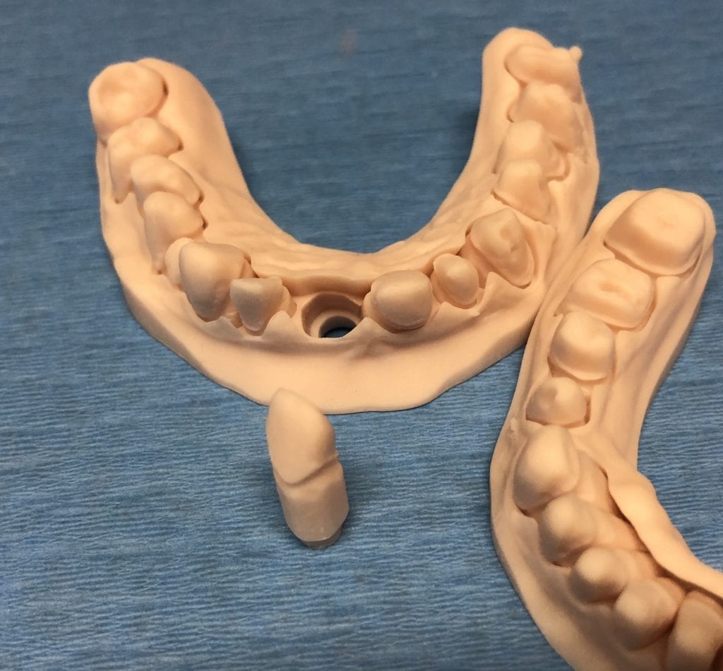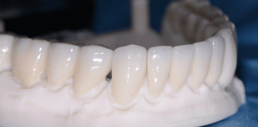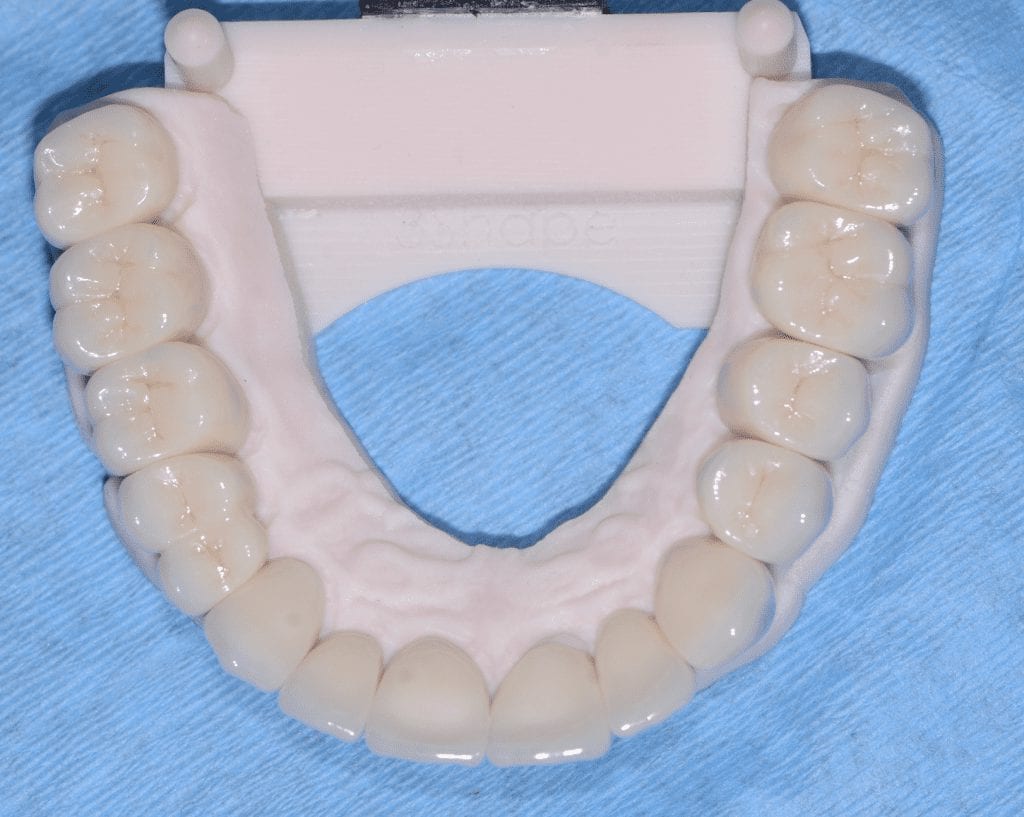 The case was designed by CADENT BESSA, and the models were printed by Burbank Dental Lab with Carbon Printers. There restorations were milled and cut back and layered by Burbank Dental Lab