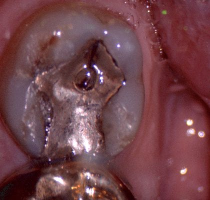 Upon preparing the second molar for full cuspal coverage, the lack of clearance necessitated a refining the preparation. The great part of digital dentistry is that you don’t have to take a whole new impression.